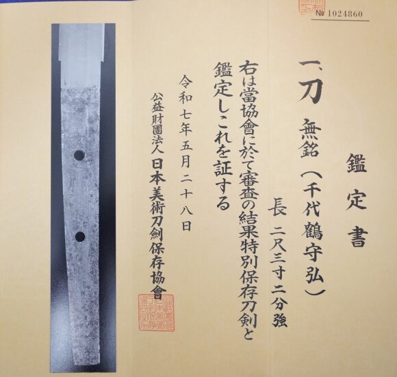 特別保存刀剣 NBTHK TOKUBETSU HOZON