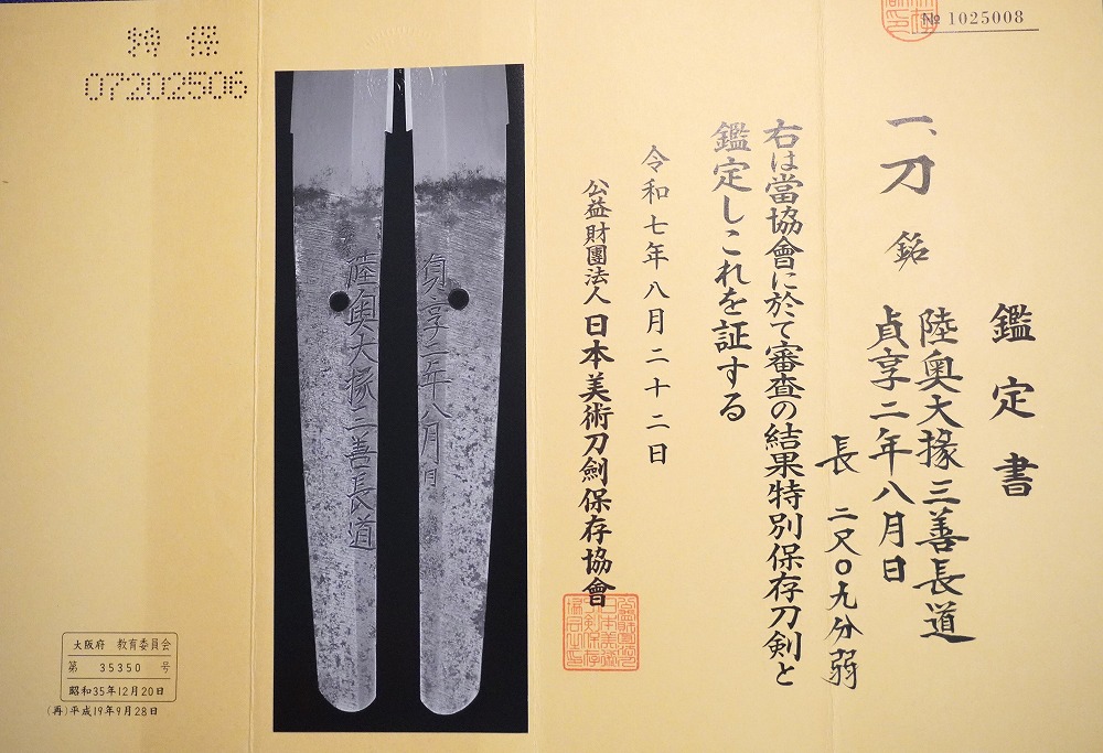 刀[陸奥大掾三善長道](特別保存)